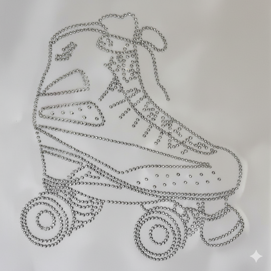 Dê um toque de brilho e nostalgia às suas peças de roupa com o nosso transfer strass termocolante de patim. Com um design clássico e detalhado, este transfer é inteiramente coberto por cristais de strass de alta qualidade que asseguram um brilho intenso e duradouro.